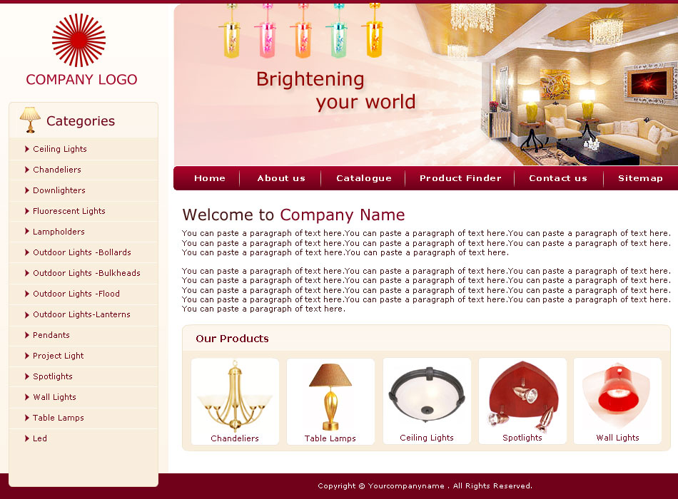 Simple and clean ecommerce website design template with easy navigation and warm color combination. Bring your Fancy Light store online. |